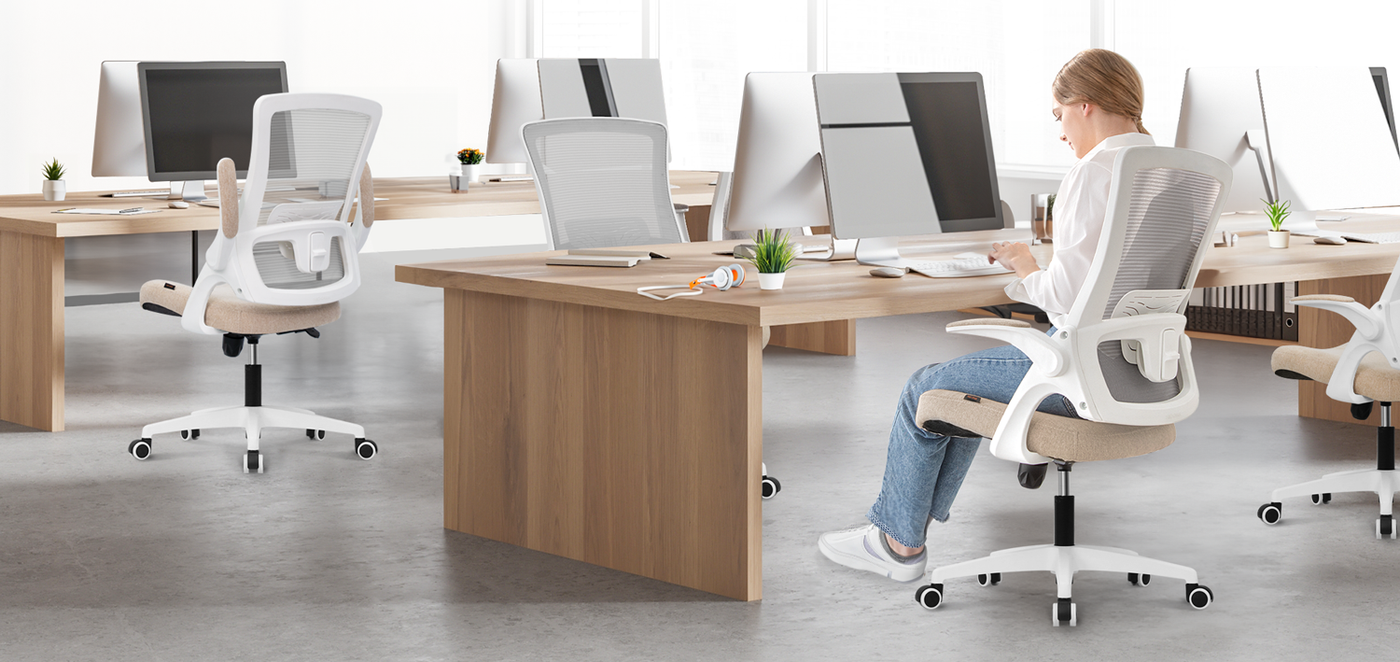 Enjoy a chair with breathable mesh back support for your lower back and flip-up padded armrests, designed to adapt to any space