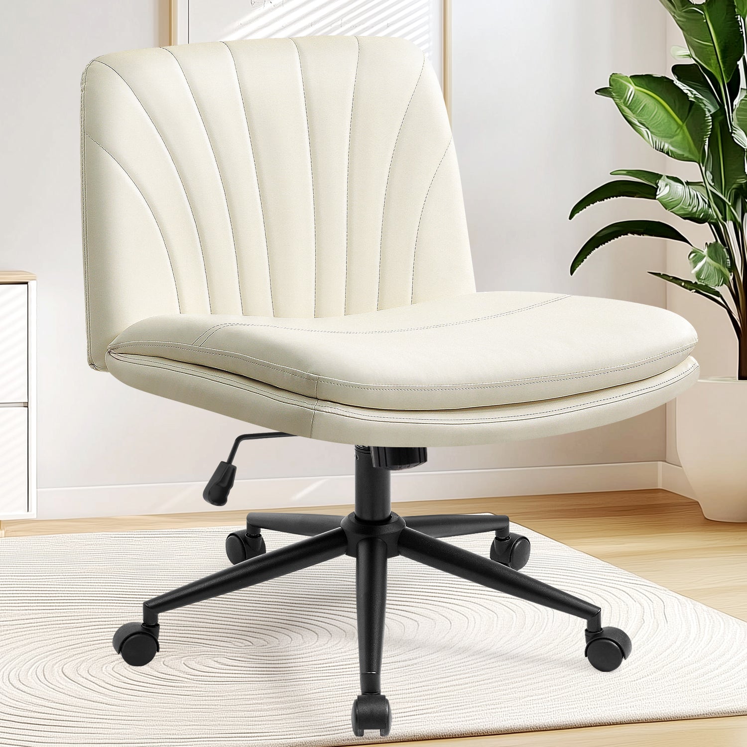 - •;Modern dual-function base with 5 wheels and 5 foot pads;•;Smooth mobility and stable support for home or office use;•;Spacious U-shaped seat allows cross-legged or upright sitting
